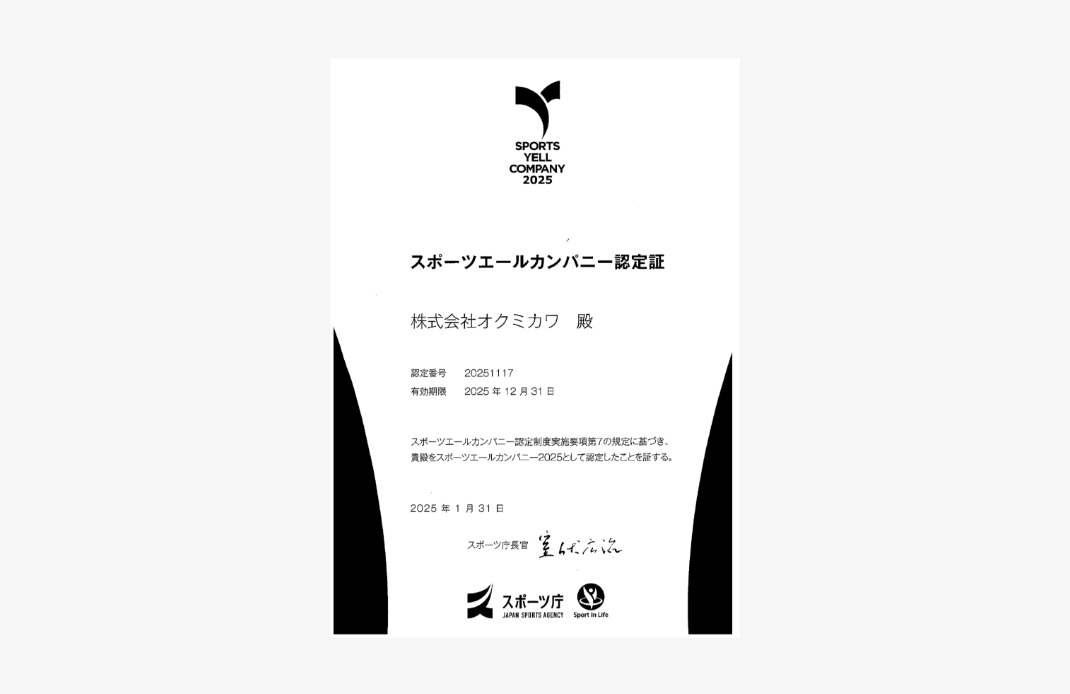 スポーツエールカンパニー認定証